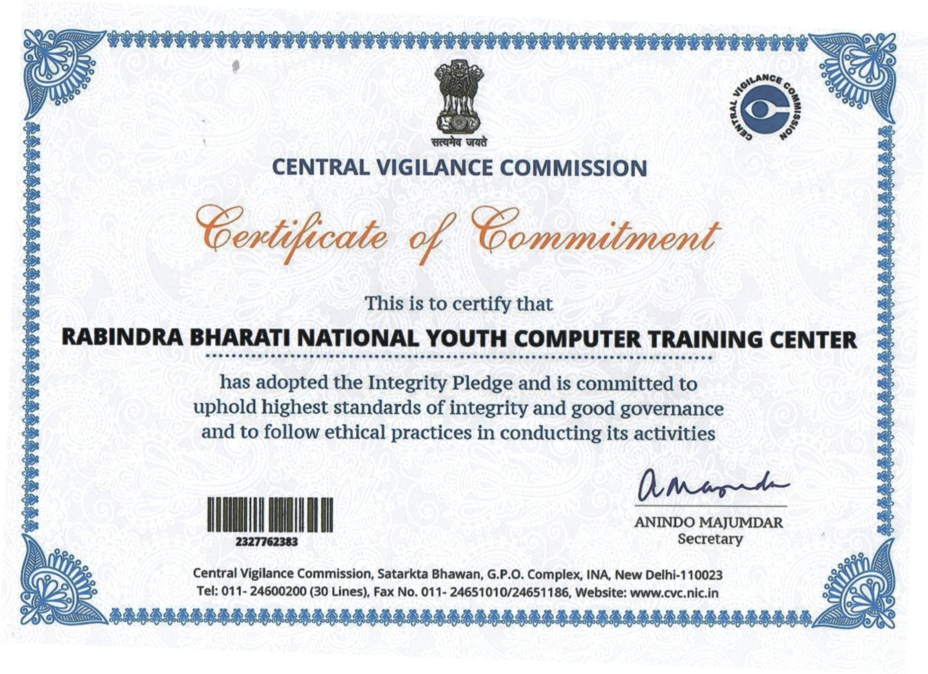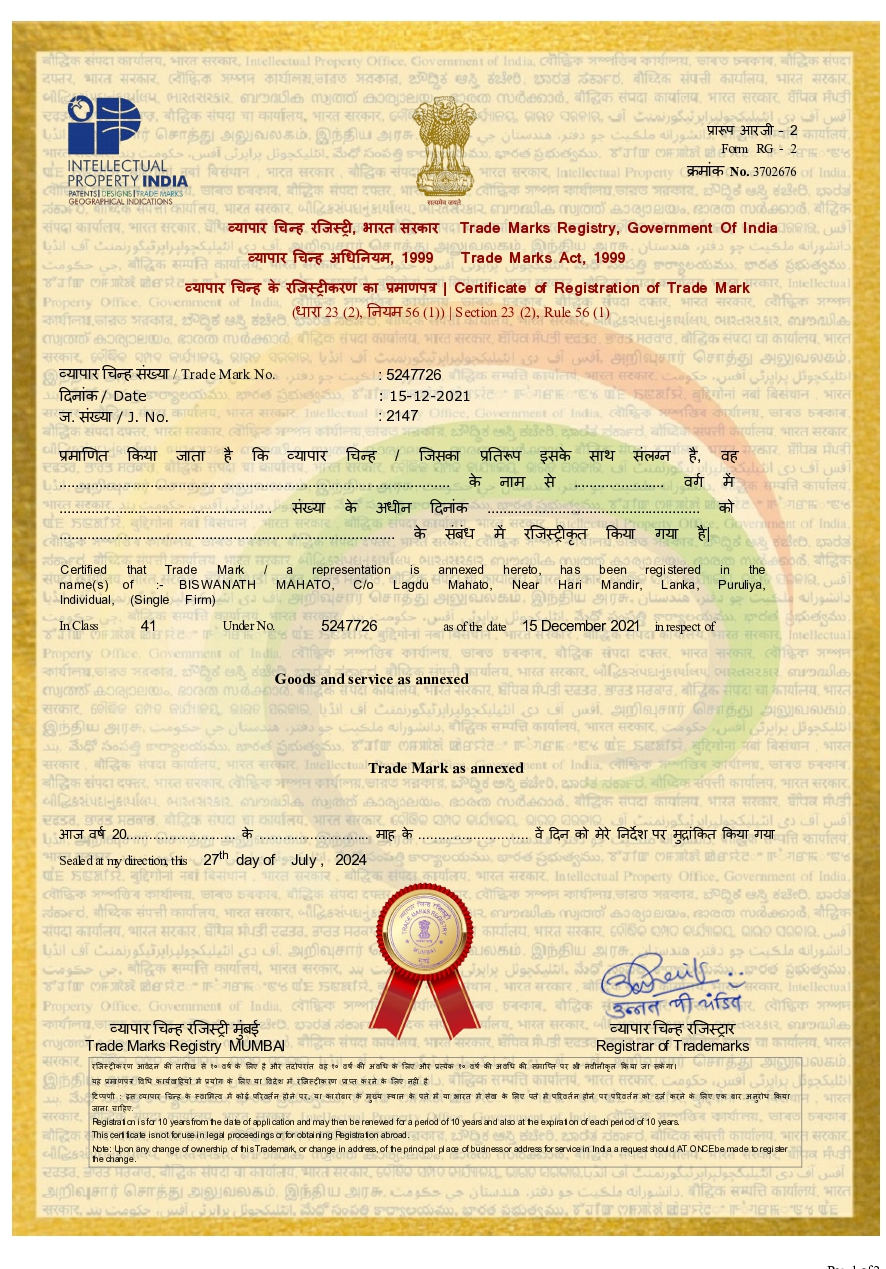 West Bengal Registration No.: IV-190302786/2018